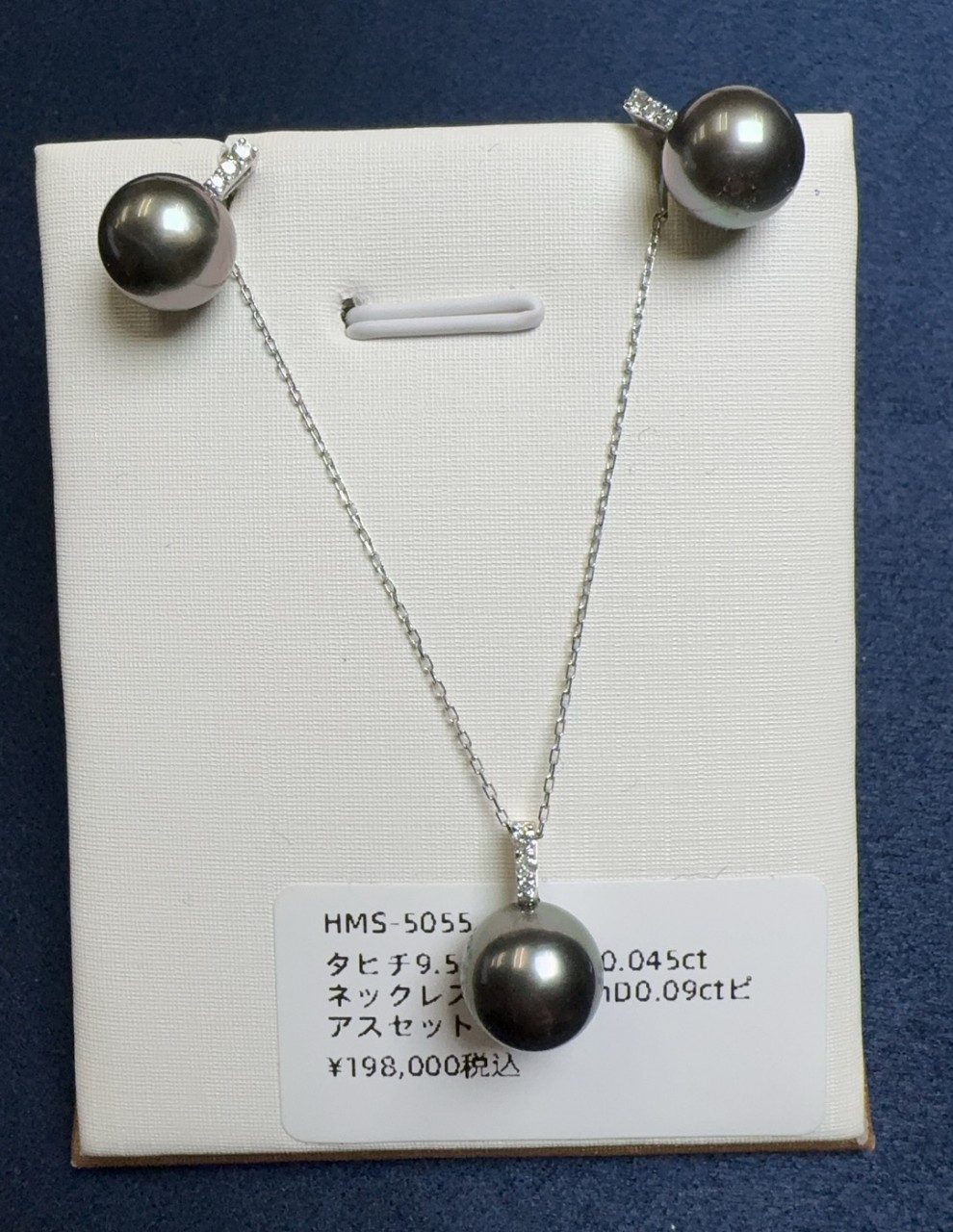 這款大溪地珍珠 項鍊和耳環是我們的明星產品,每顆珍珠的直徑在9.5-10mm和9-9.5mm之間,大小適中。 整體表面無瑕疵,珠光炫彩,散發著迷人的光澤。 黑珍珠在您整體搭配衣服時也使搭配具有層次感,提升您獨特的個人氣質。 除了珍珠外 ,項鍊和耳環上還點綴了閃閃發光的鑽石,項鍊上的鑽石克拉數為0.045,耳環上的鑽石克拉數為0.09,在整體造型的穩重上增添了一份華麗和奢華。