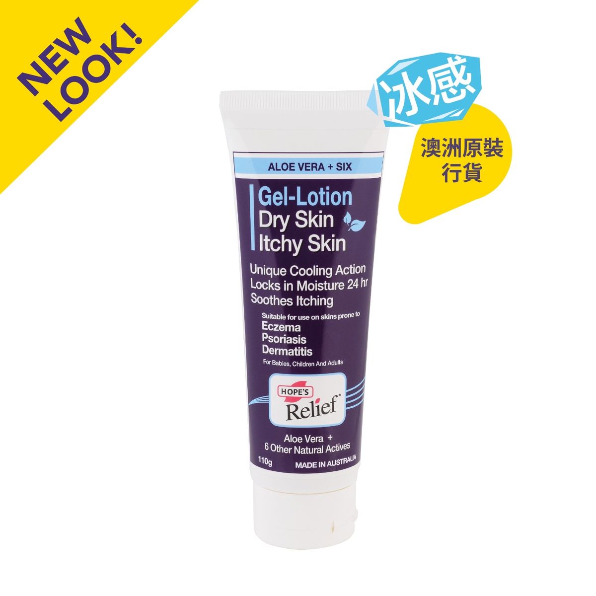 含有天然蘆薈以及 6 種額外的天然皮膚保濕劑和止癢成分