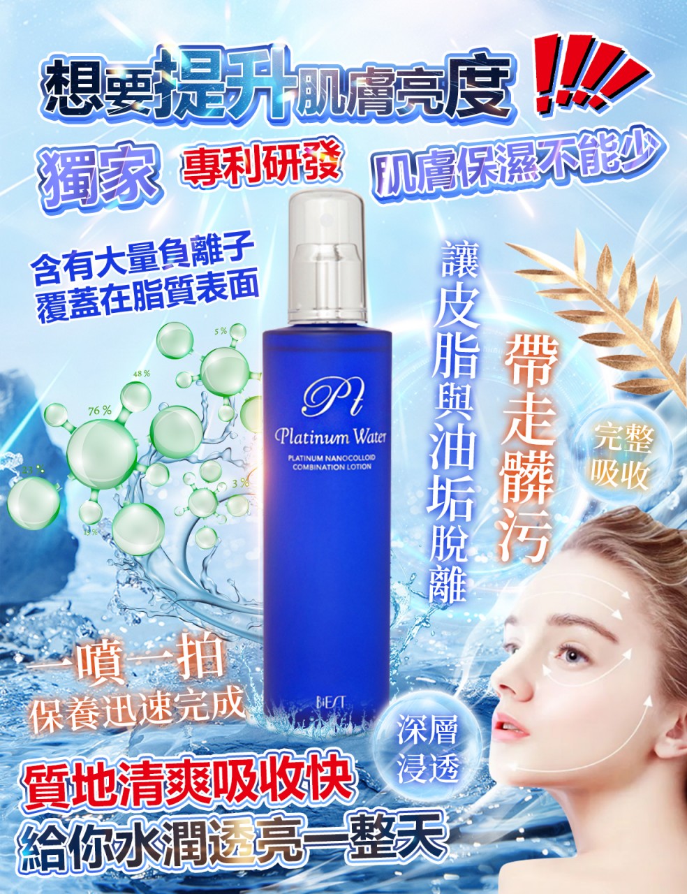 與傳統成分相比較,全新的白金納米膠體含有是一種對十一種類的活性酸素進行全面對抗的抗酸化(抗老化)物質,並且具有半永久去除的效果。得到了