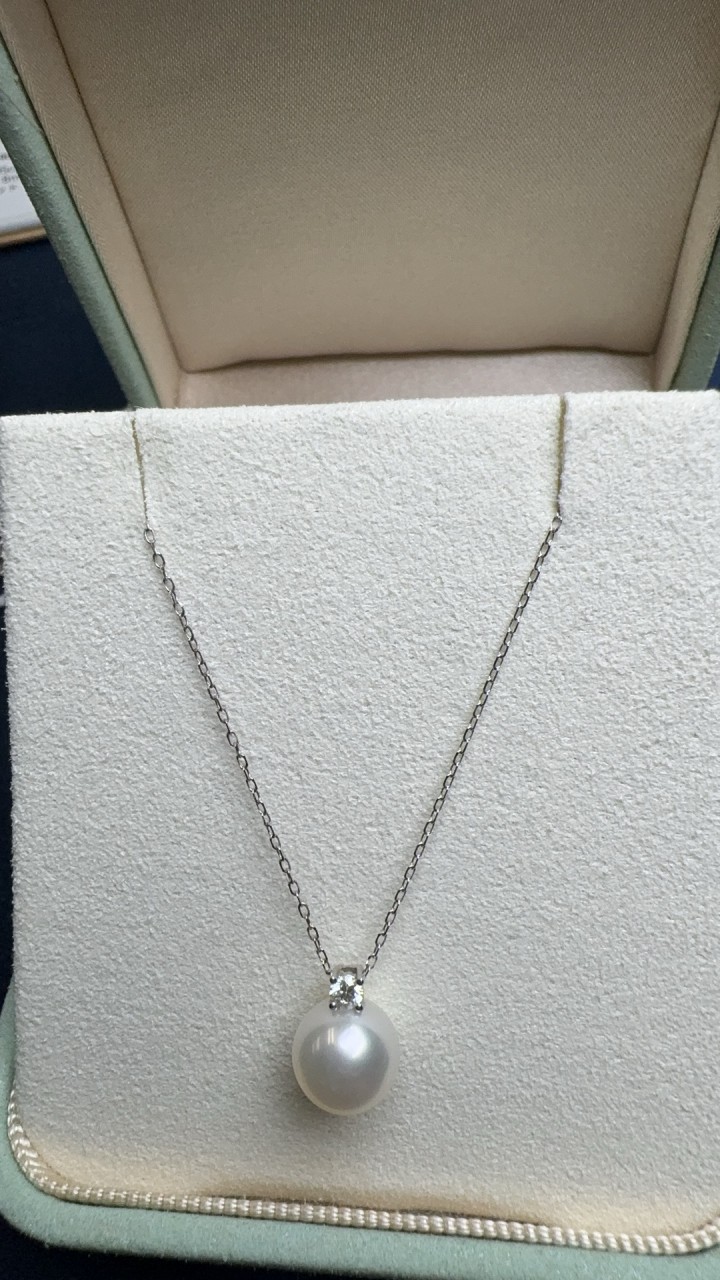 這條項鍊採用了Akoya珍珠,每顆珍珠直徑約8-8.5mm,大小適中,光澤明亮。 在項鍊的中央鑲嵌一顆0.05克拉的鑽石,為整個項鍊增添了華麗的氣息。 項鍊材質為18K金,鏈長為45公分。戴妃款單鑽系列項鍊的經典設計與精湛工藝相結合,使其成為一款不可或缺的時尚配件。 珍珠的高品質與鑽石的華麗光芒相