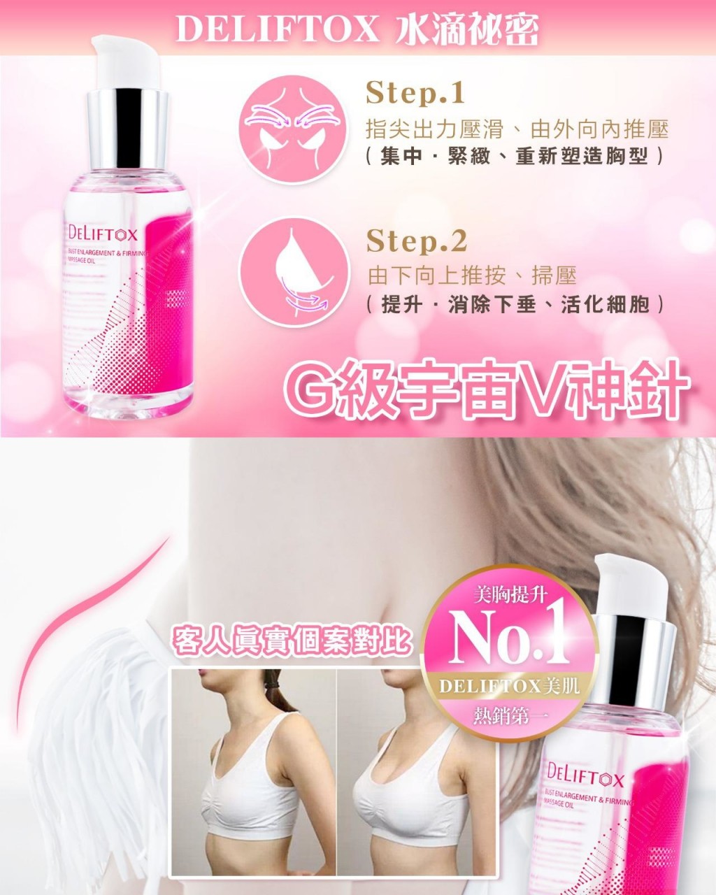 體驗胸前升級深V 前所未有的良好效果,豐滿、漲大、挺胸、防下垂、仲有美肌功效! 豐滿又白滑,照鏡都流哂口水
