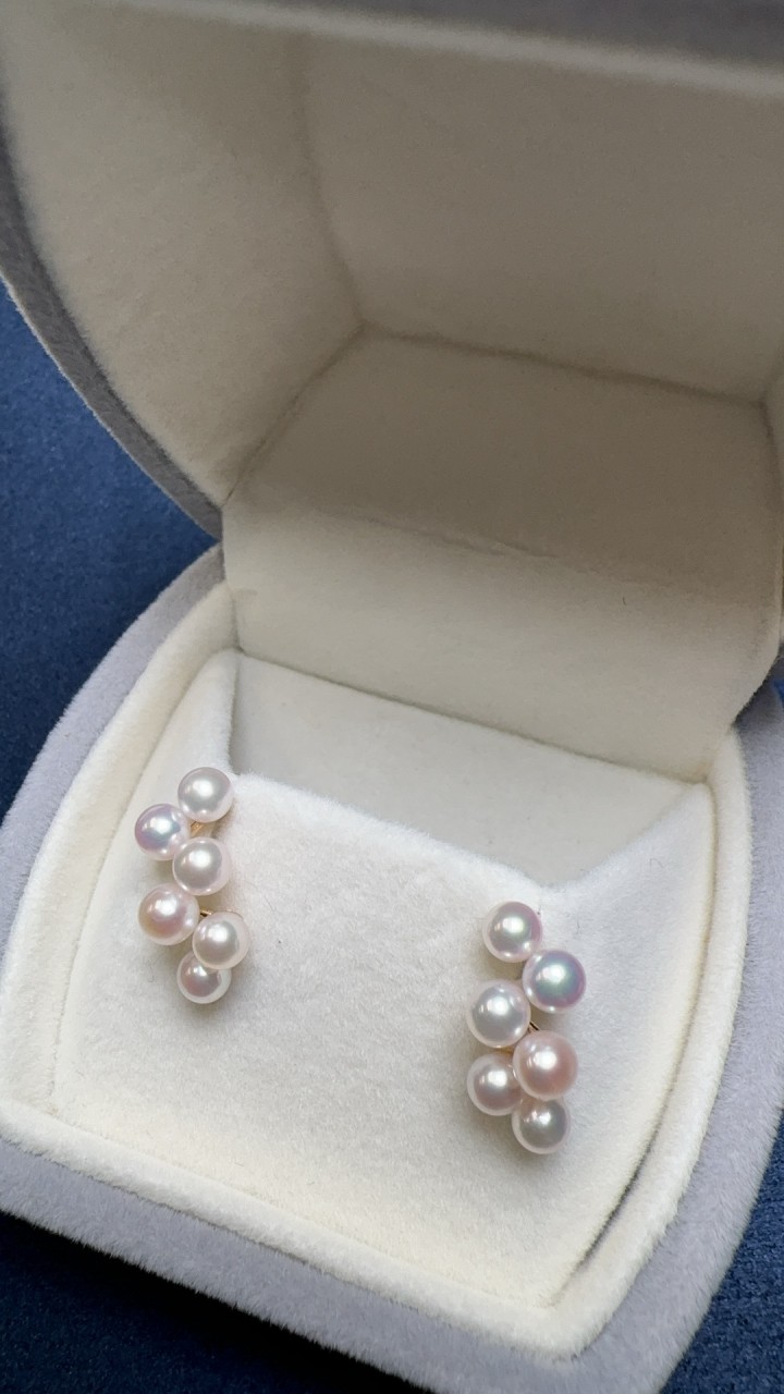 Akoya珍珠彷彿清晨的露珠一般晶 瑩剔透。 珍珠呈現出極強的 光澤,配上K18黃金製成的耳 針和耳堵,不僅美觀舒適,而且耐磨耐用。