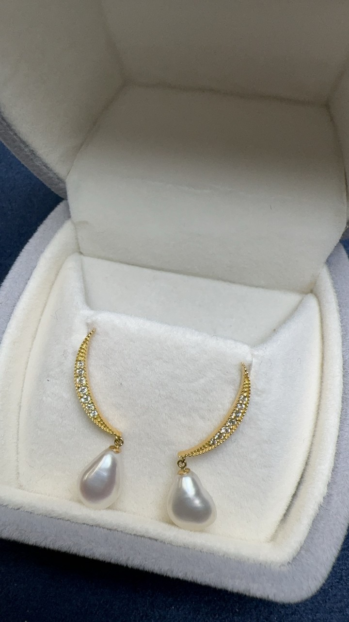 這款耳環採用了南洋克旭珍珠 ,每顆珍珠都是獨一無二的藝術品,呈現出絢麗多彩的光澤。 鑲嵌的0.10克拉鑽石增添了奢華感和閃耀度。 K18黃金耳針與耳堵精緻典雅 ,完美凸顯了珍珠的高貴品質。