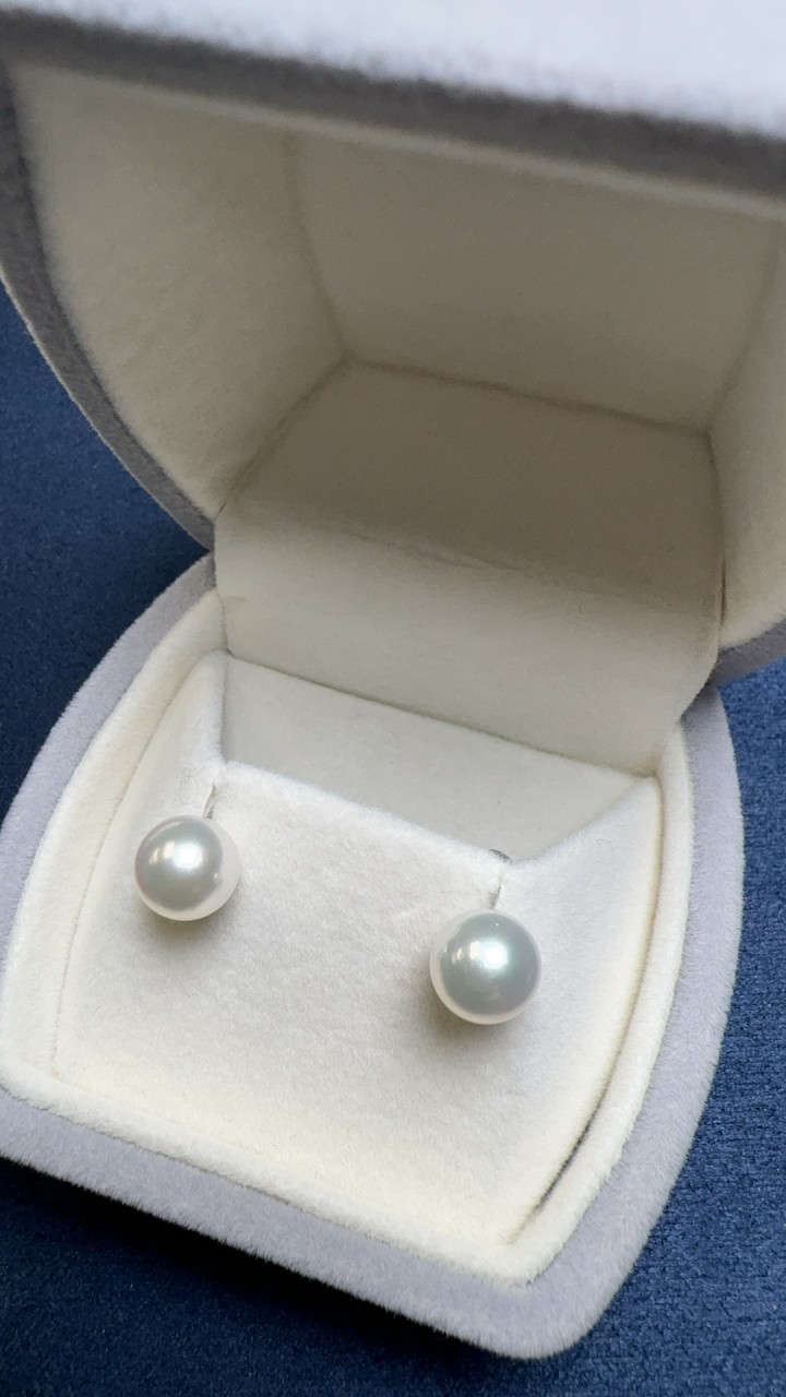 這款耳環採用了Akoya無調色花珠,每顆珍珠大小約8- 8.5mm,呈現出極致的珠光和光 澤。 耳環由PT鉑金製成,兼具優雅與典雅 ,配有真科研小卡 ,證明了其卓越品 質。